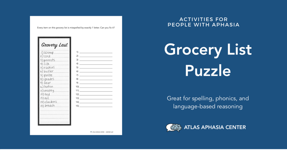 Speech Therapy Activities for Aphasia - Grocery List Puzzle